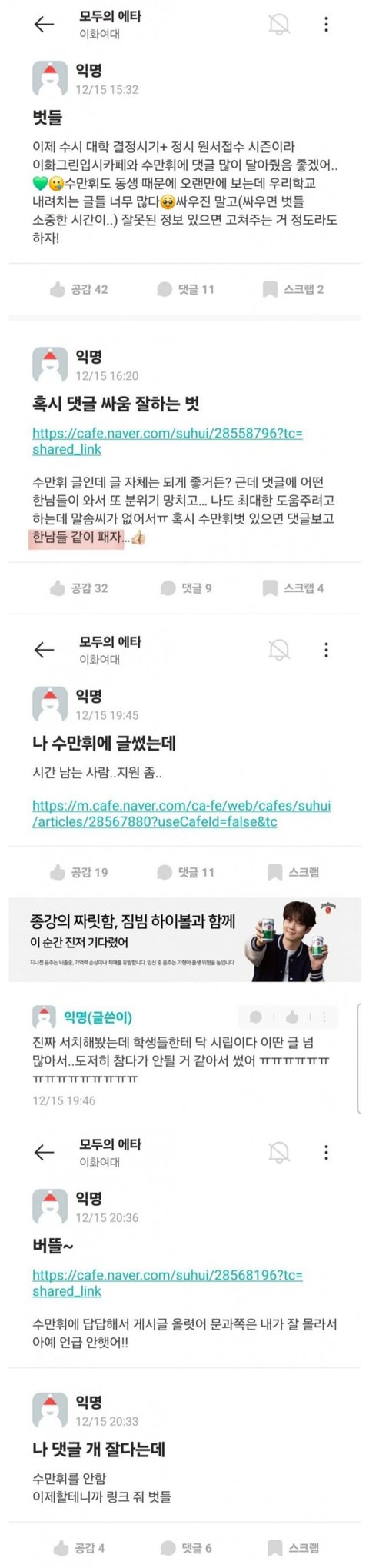 난 여대고 외부에서는 쿠션어 애기어 쓰간함 여대커뮤만큼이라도 쿠션어 애기어 사용하지말자는 좋은 취지야. 담백하게 쓰는 말투로 적응해보도록하고 안맞으면 반수나 편입시도 ㄱㄱ