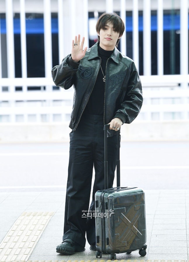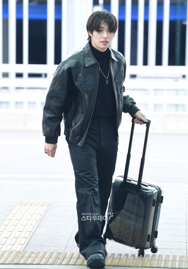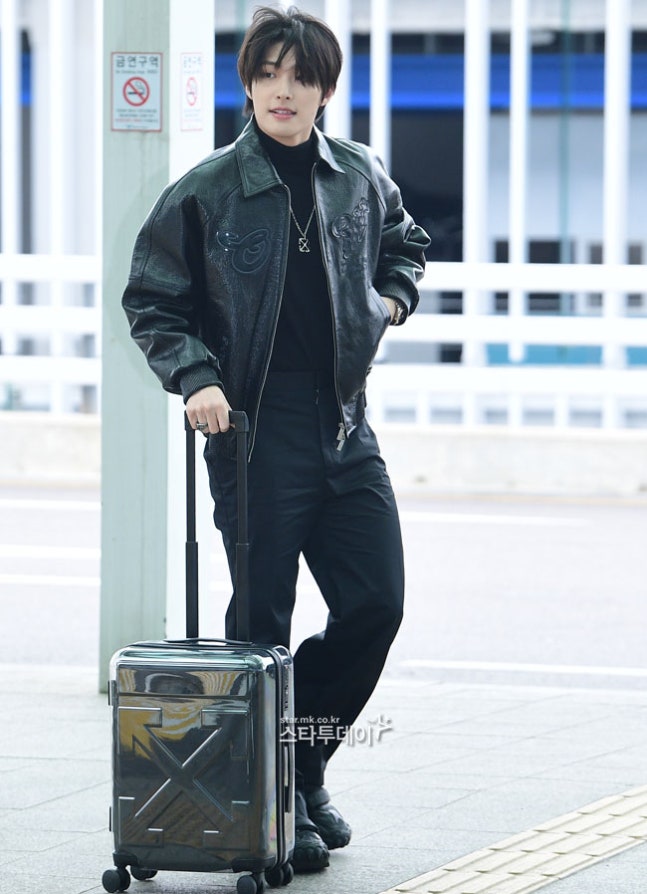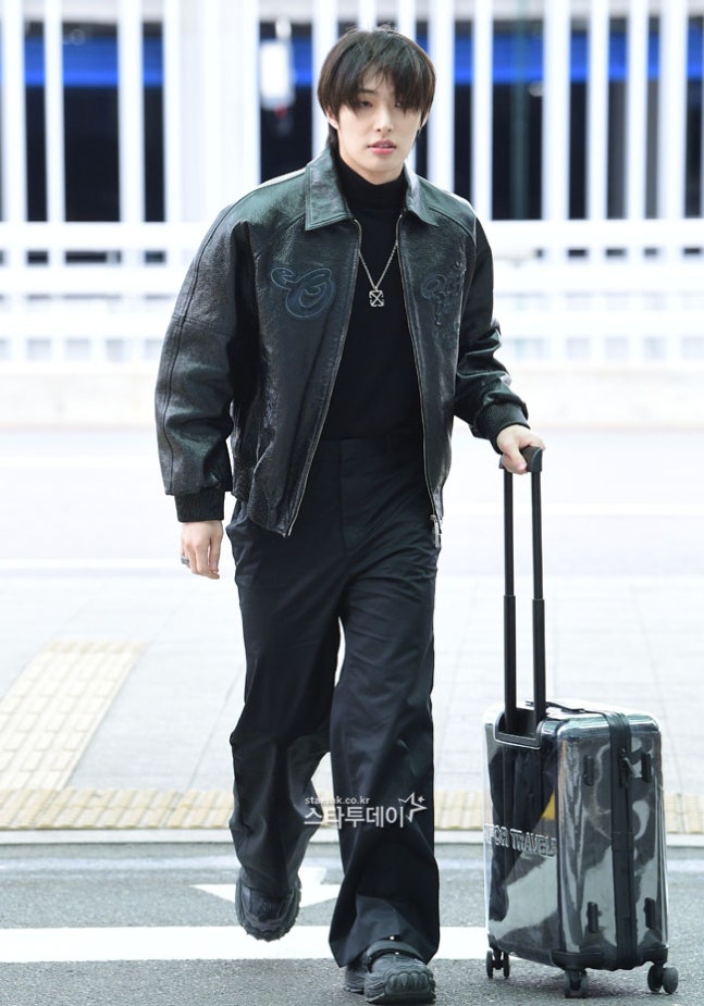 에이티즈(ATEEZ) 민기가 트렌디한 올블랙 공항패션으로 시선을 사로잡았다.
