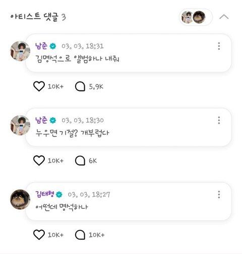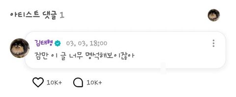 같은 시간에 글 올린 뷔 반응ㅋㅋ 너무 나잖아...