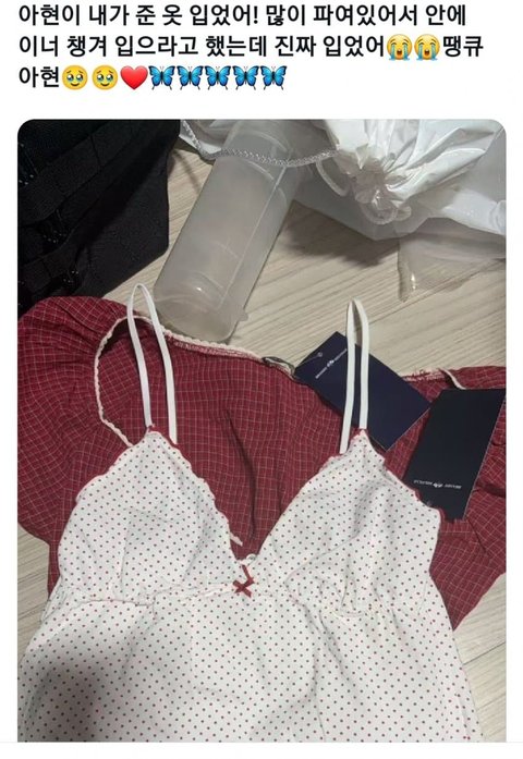 아현이가 콘서트하고 셀카에서 착장해줬다고 그팬 감동했나봐