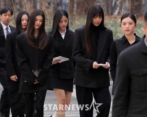 이날 뉴진스 멤버들은 검은색 정장을 입은 채 하얀색 차를 타고 서울중앙지법에 나타났다. 멤버들은 별다른 멘트 없이 무표정으로 땅만 바라보며 법정에 들어섰고, 현재 법원 내에서는 멤버들끼리 소소한 대화를 나누며 심문기일을 기다리고 있다.