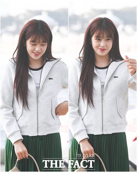 그룹 아이브의 안유진이 7일 오전 해외 일정 참석차 인천국제공항을 통해 프랑스 파리로 출국하며 포즈를 취하고 있다.