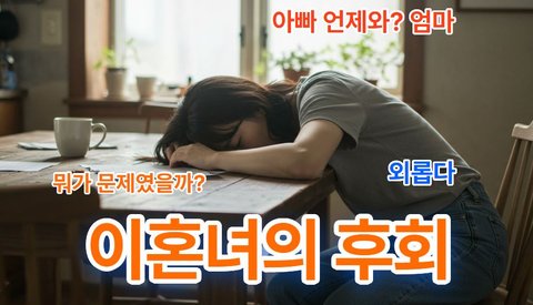 “내가 왜 이렇게 된 걸까?” 지수는 조용히 작은 소리를 냈다. 사랑으로 시작된 결혼생활이 왜 이렇게 끝나버렸는지, 어디서부터 어긋난 건지 떠올리려 했지만, 기억은 파편처럼 무질서하게 흩어져 있었다. 싸웠던 날들의 장면, 항상 차가운 얼굴로 변해버린 현우, 아이의 웃음소리조차 무겁게 내려앉던 집안 분위기… 그리고 마침내 서로를 바라보지 않게 된 날들…