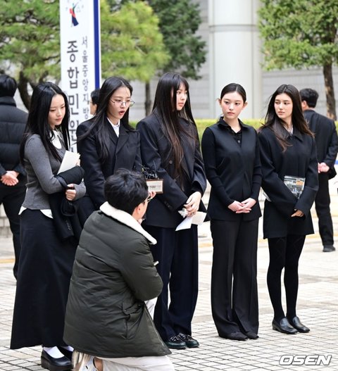 이날 뉴진스(NJZ) 멤버 민지, 하니, 다니엘, 해린, 혜인 모두 직접 법원에 출석했다.