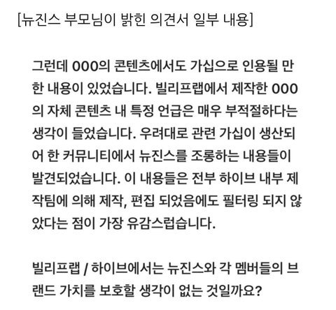 뉴진스 민지 엄마가 공식 입장문에