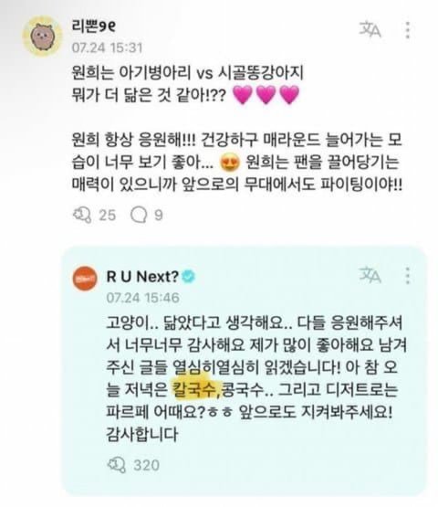 나 늊 코어까진 아니지만 앨범 예뻐서 늊 데뷔앨범도 산 사람이라(인증가능함) 릿보다 늊을 더 좋아하는데도 예전에 판녀들이 아일릿 억까한거 중에서 칼국수가 제일 심했음 자컨에서 아일릿멤들이 고기말고 칼국수 선택했다고 판에서 엄청 처맞지않았냐 일부러 아일릿멤들이 민지 조롱한거다 이러면서;; 심지어 정상인 입맛이라면 칼국수말고 다 고기고른다고 억까하는거 보고 ㅈㄴ 황당; 고기보다 칼국수 좋아하는게 왜 비정상임? 나도 고기 엄청 싫어하고 칼국수 개좋아하는데 그럼 나 비정상이야?