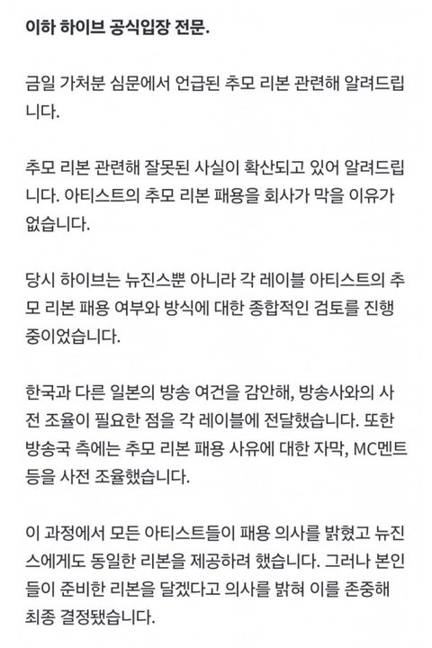 그냥 하이브 입장문 올린건데 다들 왤케 화남?ㅋㅋㅋ 하이브 말이 사실이라면 다음 기일에 하이브가 각 레이블에 보낸 공문이나 이메일을 증거자료로 제출하겠지ㅋㅋ 다들 진정해~