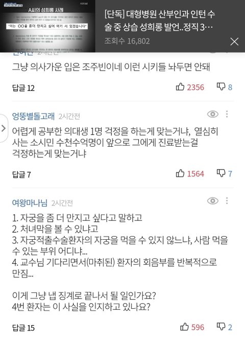 나도 남의사한테는 절대 안감. 저런 ㅎㄴ의사가 근절이 안되니까 멀쩡한 소수 남의사도 피해보는거 아님? 업보지 뭐