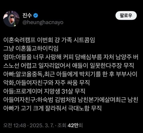 저기서 아빠는 술 좀 드시는거 빼고 문제없음 ㅜㅜㅋㅋㅋㅋㅋㅋㅋㅋ 아들 여친이 ㄹㅇ 빌런...