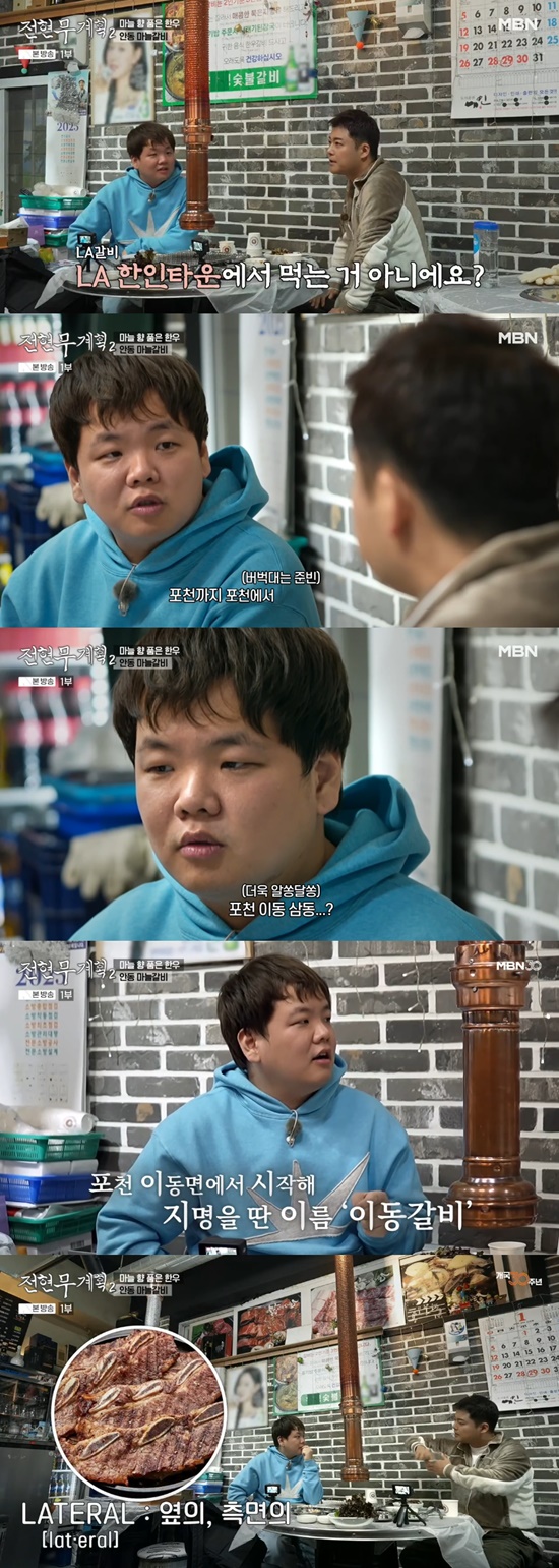 곽튜브는 "이동하면서 먹는거냐"며 "친절하게 알려줄 수 있냐"고 청했다. 전현무는 "포천 이동면에서 시작해 유명해진 갈비다. LA갈비도 '레터럴'이라고 해서 옆, 측면을 굽는거라고 그렇게 말하는 것"이라고 자세하게 설명했다.
