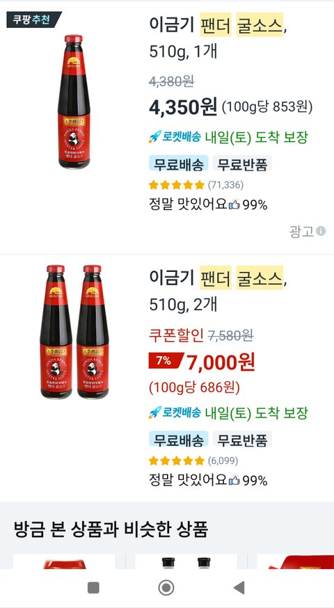 원료 창의성 없이 팬더 굴소스에 조미료 첨가