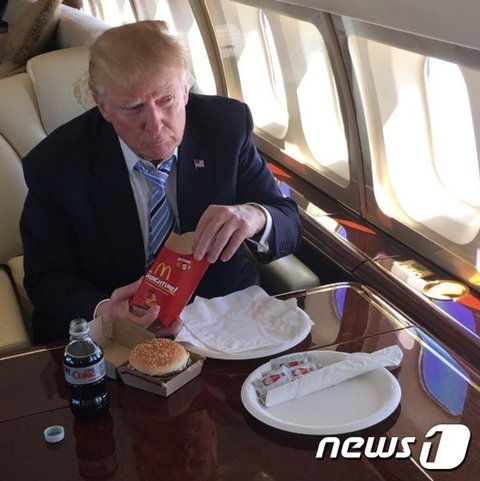 한편 트럼프 대통령은 2016년 5월 공화당 대선후보로 확정됐을 당시 자신의 전용기에서 프렌치프라이와 햄버거를 먹는 사진을 소셜 미디어에 게재했을 정도로 햄버거를 즐겨 먹는다.