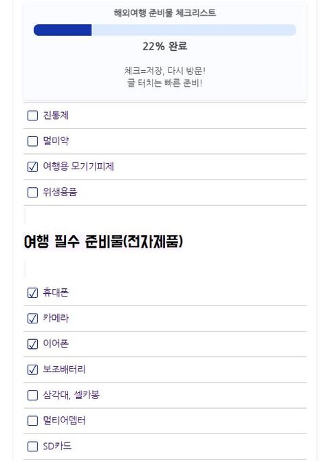 해외여행 준비물 체크리스트 프로그램 사이트 만들었는데요.