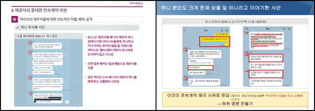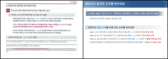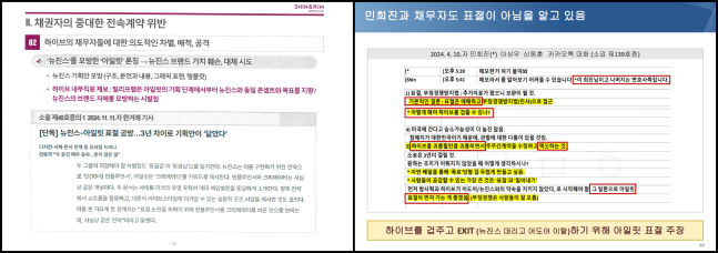 뉴진스 측은 피피티 93장 준비해 신뢰 파탄의 이유를 설명했다. 13가지 이상의 이유를 들었다. 어도어 측은 피피티 총 229장을 준비했다. 뉴진스측의 주장을 하나하나 반박했다.