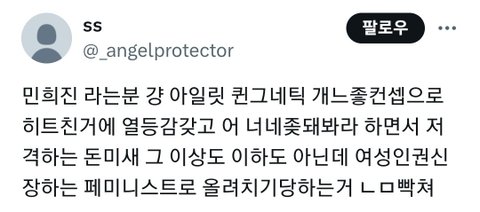 그냥 릿도 너무 억울하고 안타깝고 그만 욕했으면 좋겠고 막 그런데 이 의견은 ㅈㄴ 동의 못하겠음.... 퀸그네틱인건 알겠는데 왜 민희진이 그걸로 열등감을 가지시긔?