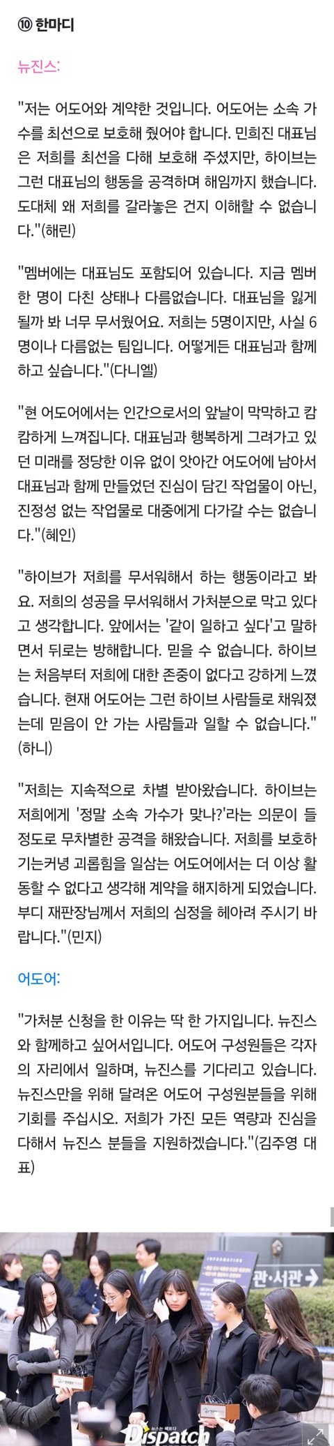 지금 여론은 뉴진스가 더 불리한것 같아
