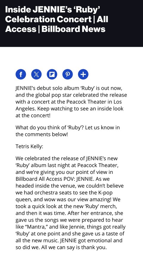 미국 빌보드랑 롤링스톤이 제니 공연 극찬하더라 k팝 퀸이래