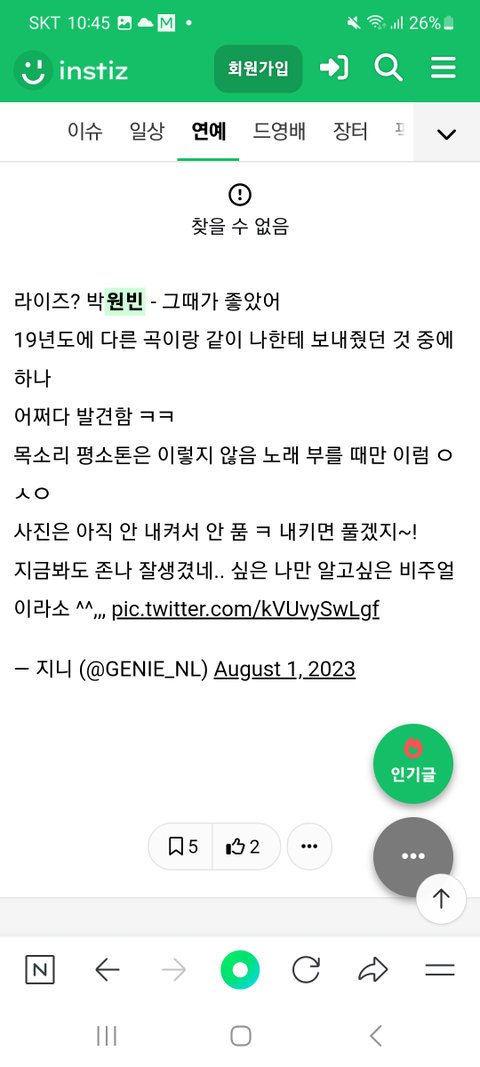 원빈이랑 연락? 썸? 인 여자가 노래부른더 풀고