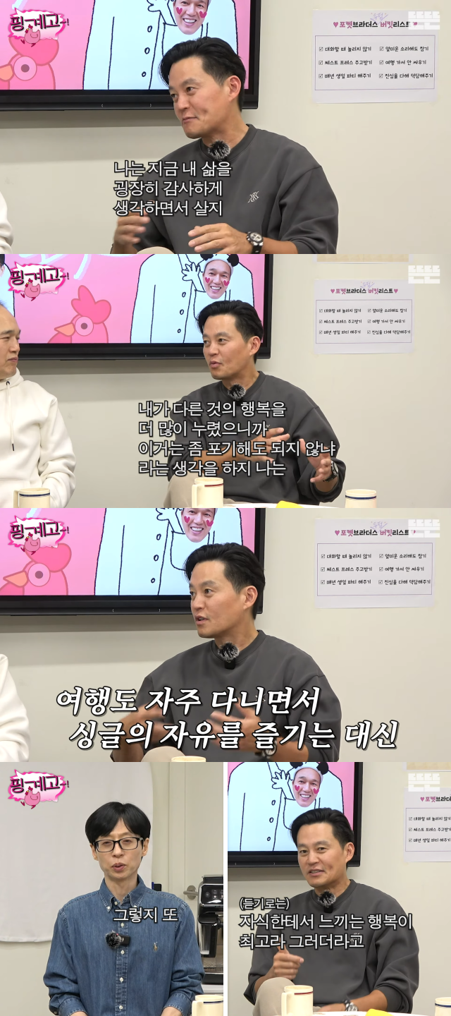 그러면서 "가족 간의 행복을 누리고 사는 것보다 다른 것에 행복을 많이 누렸으니까 이건 좀 포기해도 되지 않나 싶다. 사람이 다 가질 순 없다"며 "맨날 외국 다니고 놀러 다니는 자유를 갖고 있지만, 가족에서 오는 행복은 없다. 자식에게 느끼는 행복이 최고라고 하더라. 난 그건 평생 느끼지 못할 거다"라고 덧붙였다.