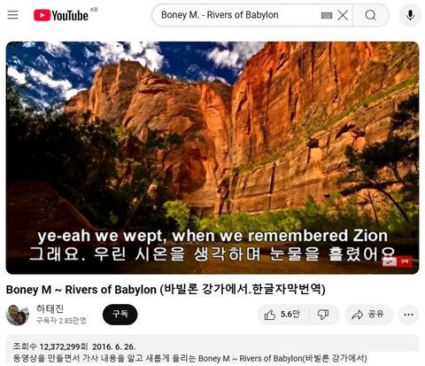 (사진4 설명) Boney M ~ Rivers of Babylon (바빌론 강가에서.한글자막번역)