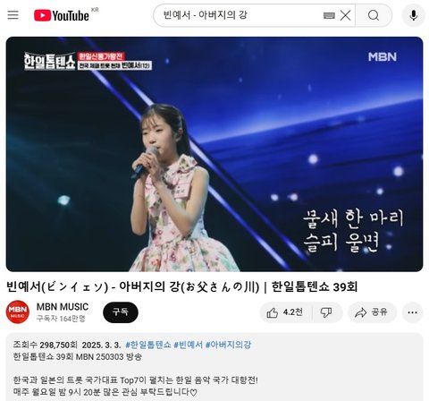 (사진6 설명) 빈예서(ビンイェソ) - 아버지의 강(お父さんの川)|한일톱텐쇼 39회