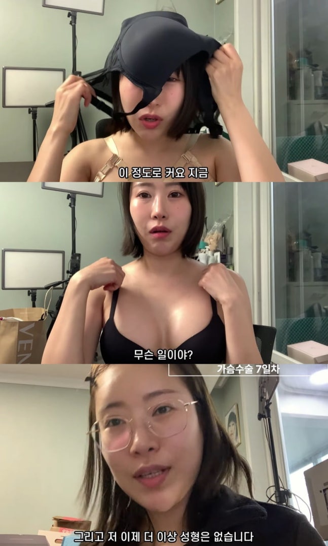 8일 '영평티비' 채널에는 "가슴수술 후 최초 공개!! 수술 썰 풀면서 A 컵때 브라 입어보기"라는 제목의 영상이 올라왔다.