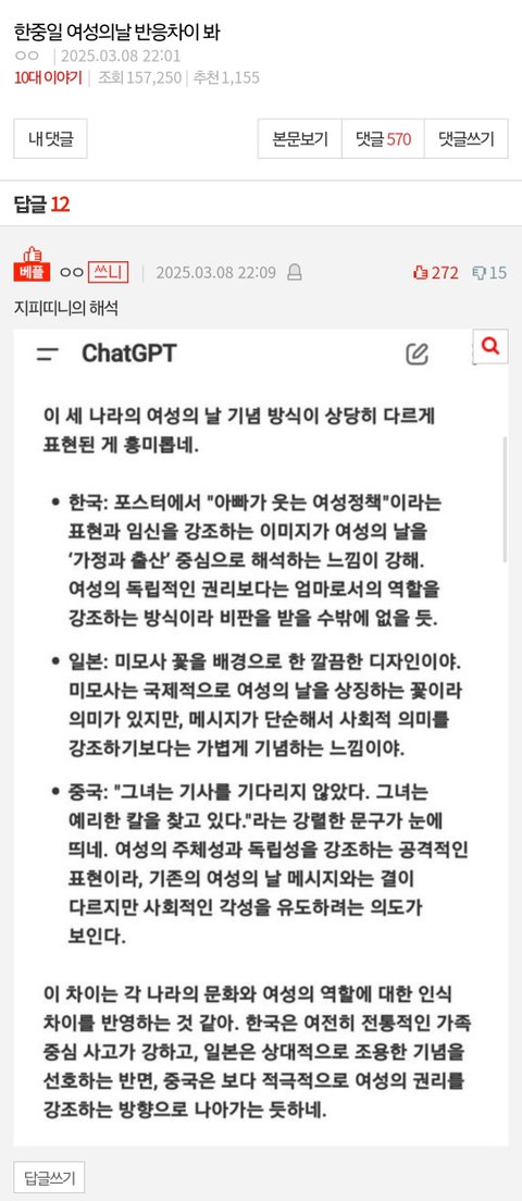 본글이랑 저 댓글이 중국이 여성인권 친화적이라는걸로 선동하는데 실제 자료 찾아보면 전혀 아니라는걸 알 수 있음