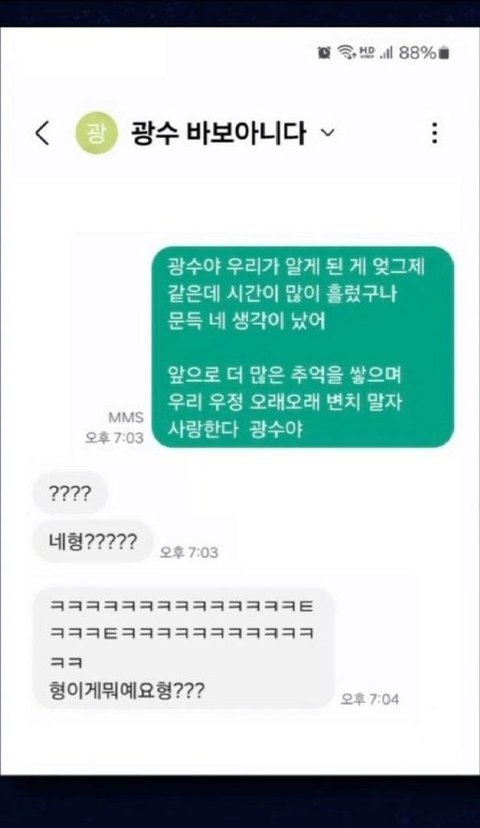 그 문자에 대한 반응이 그냥 광수 그 자체라 뻘하게 터짐