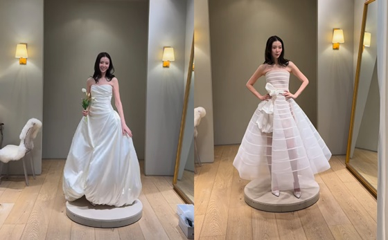 /사진=아이린 SNS모델 아이린이 5월 결혼을 앞둔 가운데 웨딩드레스 고르기에 한창이다지난 10일 아이린은 개인 계정에 "(결혼) 두 달 남았는데 신부의 환상 속에서 드레스 하나씩 입어 보고 있다. 어떤 게 제일 마음에 드냐"라며 영상을 올렸다.