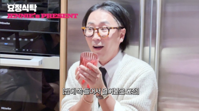 이날 제니는 정재형이 루비 컬러의 신상 위스키를 제안하자 그에 어울리는 선물을 준비했다고 밝혔다. 그는 “나를 기억해주셨으면 좋겠다는 마음으로 가지고 왔다”면서 루비 컬러의 잔을 꺼냈다. 평소 테이블 웨어에 관심이 많은 정재형을 위한 맞춤 선물. ‘루비’는 제니의 영어 이름 제니 루비 제인(Jennie Ruby Jane)의 중간 이름이기도 하다.
