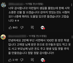 돈 받은 구독자들도 너무 감사하다고 댓글 남김ㅠㅠㅠ