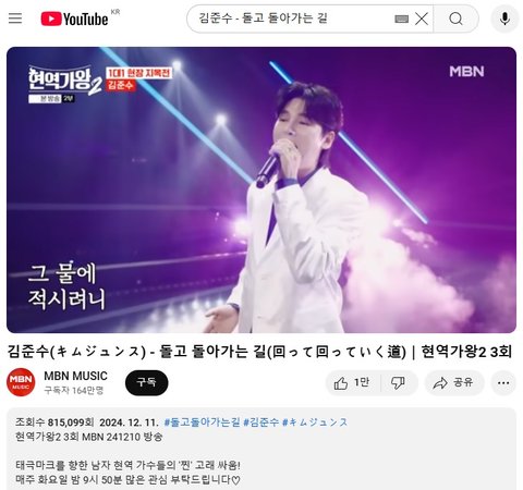 (사진1 설명) 김준수(キムジュンス) - 돌고 돌아가는 길(回って回っていく道)|현역가왕2 3회