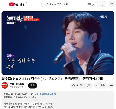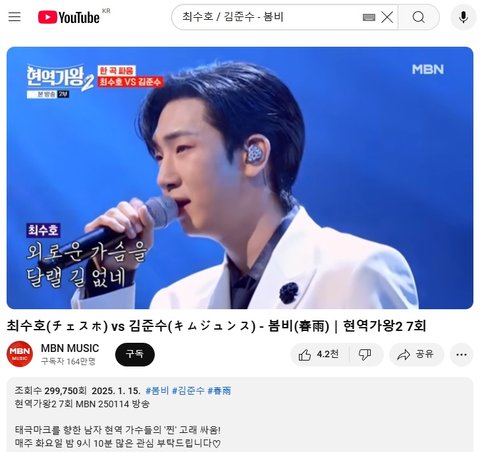 (사진4,5 설명) 최수호(チェスホ) vs 김준수(キムジュンス) - 봄비(春雨)|현역가왕2 7회