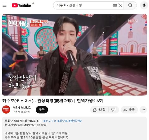 (사진6 설명) 최수호(チェスホ) - 관상타령(観相の歌)|현역가왕2 6회