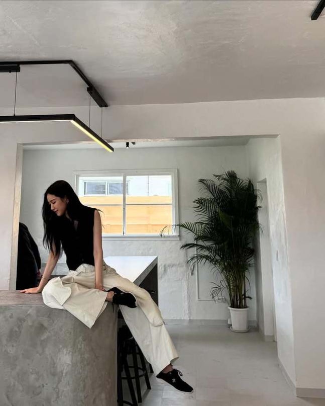 손나은 소셜미디어손나은은 긴 팔다리를 돋보이게 하는 스타일링을 선보였다. 블랙 민소매에 와이드 팬츠로 수수한 분위기를 연출하거나 베이지 원피스를 입고 인형 같은 자태를 뽐냈다.