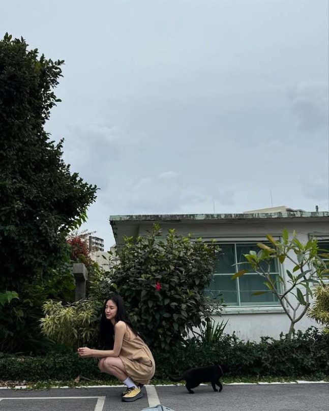 손나은 소셜미디어공개된 사진 속 손나은은 일본 오키나와 바다를 배경으로 몸매 굴곡이 드러나는 회색 원피스를 입고 미소를 지었다. 운동화를 신었음에도 우월한 8등신 비율을 자랑해 감탄을 자아낸다.