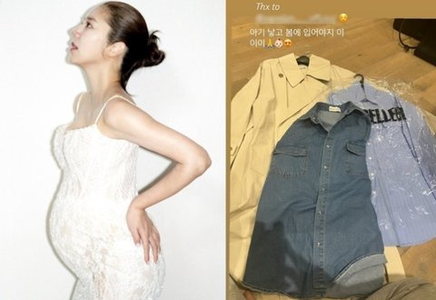 손담비 소셜네트워크서비스 계정사진 속엔 한 브랜드로부터 선물받은 옷들을 바닥에 펼쳐놓은 손담비의 모습이 담겨 있다. 앞서 손담비는 거대한 D라인의 만삭 화보를 공개한 바, 만삭의 배 탓에 그림의 떡이 된 옷에 손담비는 "아기 낳고 봄에 입어야지 이이이"라며 출산 후의 착장을 기약했다.