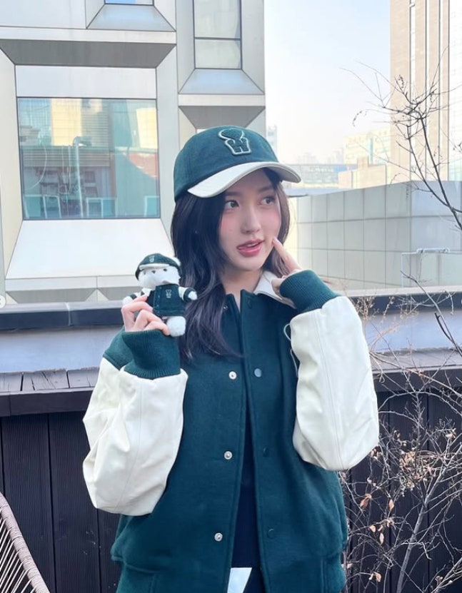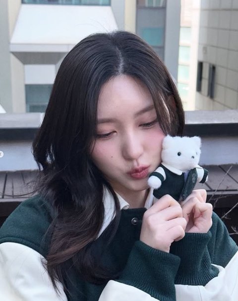 특히 곰돌이 인형과 함께 찍은 사진에서는 특유의 상큼한 미소와 윙크로 팬들의 마음을 설레게 했다. 초록색 야구 점퍼에 같은 색 모자를 착용, 곰인형과 ‘커플룩’을 연출하며 깜찍함을 더했다.