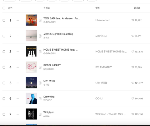 하이브  아이돌 메론  Top 100 현재