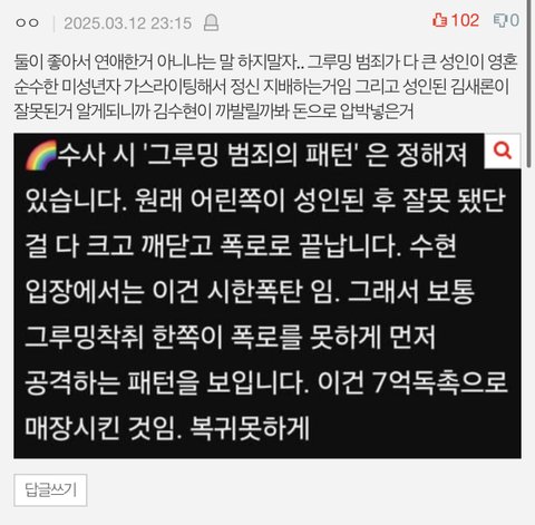 자기 미자랑 연애한거 들키면 ㅈ될거 아니까 김새론 아예 _되게 해서 연예계로도 못올라오게할려고 저지랄한거잖아