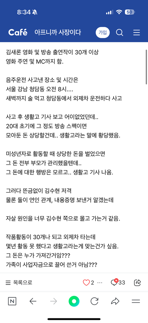 네이버 카페 김새론ㅅㅈ 원인 김수현으로 몰아간다 유가족은 뭐하고? 라는 내용 똑같은 글 올라오는중…. 이런건 김수현 팬이 여기 저기 카페에 올리는건가??