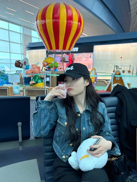 파리 출국 땐 또 청데님 크롭 자켓 봄 데일리 룩으로 세상 설레게 하더니 ㅠㅠ