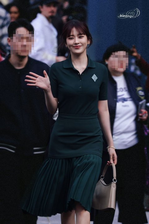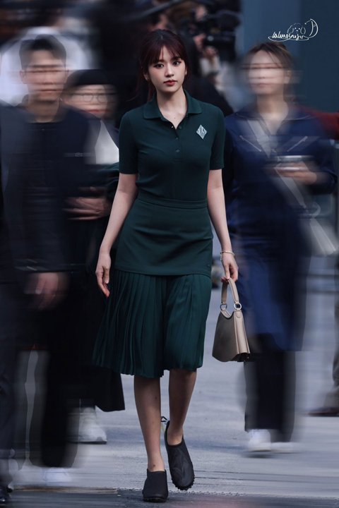 브랜드 공식 컬러인 그린색 원피스를 입고 ㅠㅠ 얘 표정 여유있는거봐 ㅠ