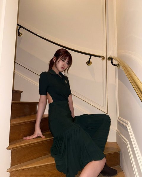 보디 슈트에 플리츠스커트를 매치한거 나름 소화 잘한거 같은데