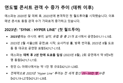 23년 월드투어에 비해 관객 수 2배 이상 늘음