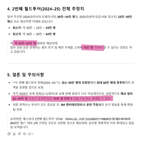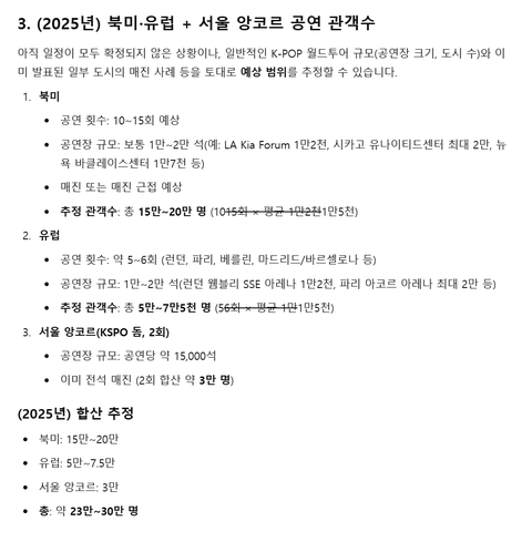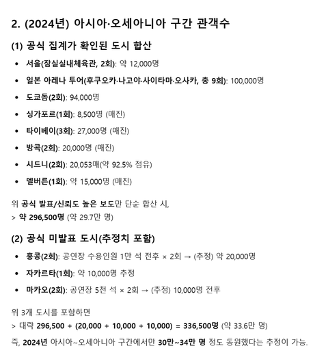 24~25 월드투어 총 관객 수 최소 55만명 이상