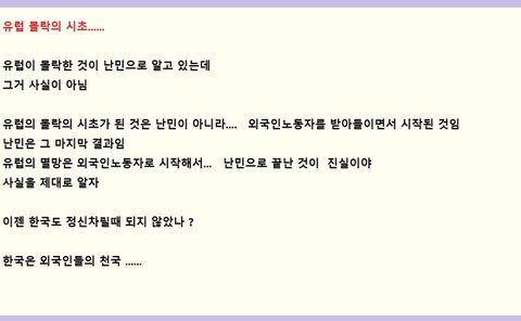 -------------------------------------------------방송에 나와서 외노자 문제를 쏙 빼놓고서.... 저출산이니 뭐니 하는 전문가 행세하는 자들을 절대로 믿지마라