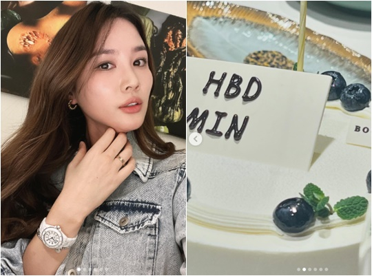 /사진=진아름사진 속에는 "민"이라는 이름이 적힌 케이크와 두 사람이 함께 즐긴 와인, 분위기 있는 곳에서 미모를 뽐내는 진아름의 모습 등이 담겨 있다.