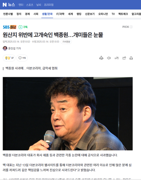 백종원 호감이었는데 국산 농가 지원한다고 언플하고 무슨 공장 지었다며..ㅋ 그래놓고 외국산 쓰고 이런건 일반 기업이었으면 쉴드없이 쳐맞았음