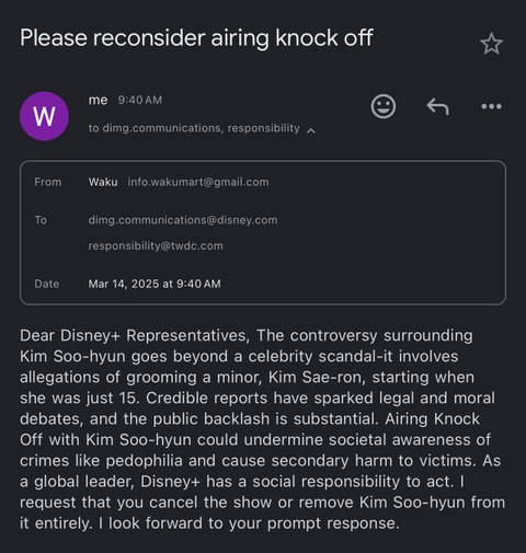 디즈니본사 김수현 오피셜 컴플레인 보냈다